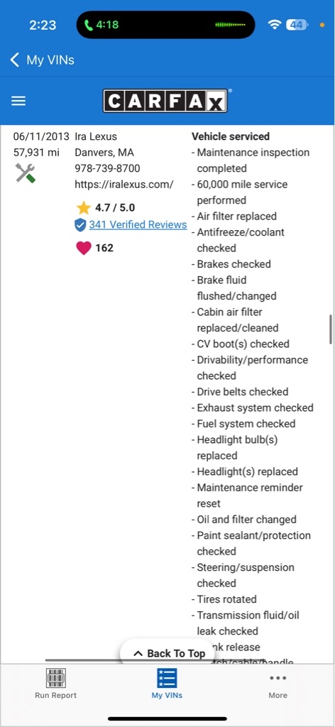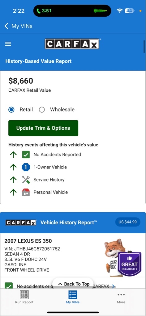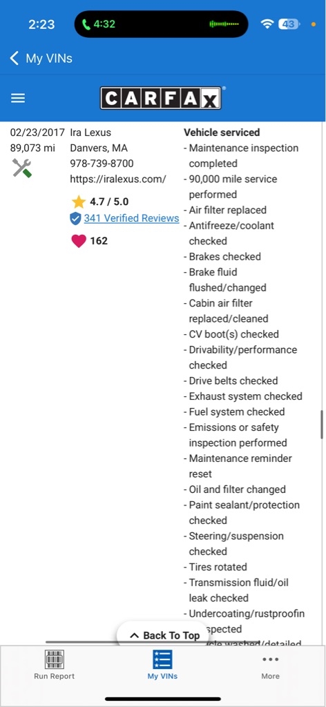 CARFAX Snapshot